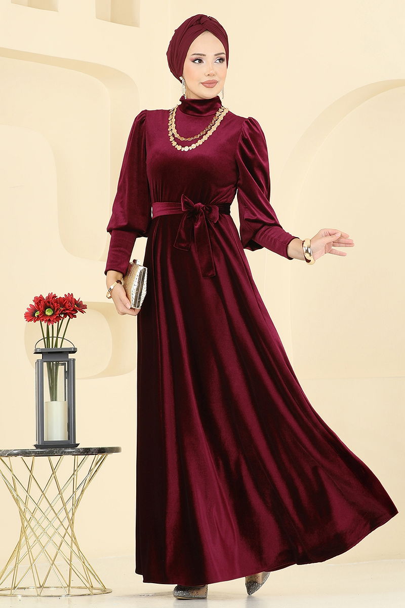 Tanıtımı yapılan ürün, zarif tasarımı ve kaliteli kadife kumaşı ile dikkat çeken Manşeti Uzun Abiye Elbise, tesettür giyim tarzına uygun bir seçenektir. Dört mevsim boyunca rahatlıkla kullanabileceğiniz bu elbise, yalnızca kuru temizleme ile temizlenmelidir. Hakim yaka detayı ve astarsız yapısı ile konforu ön planda tutarken, kemer detayı ile şıklığı tamamlar. Kafadan giyilen bu model, pratik kullanımı ile de ön plana çıkar. Kemer, dalgalanmayı önlemek amacıyla kenarları dikilmiş bir şekilde tasarlanmıştır ve isteğe bağlı olarak çıkarılabilir.