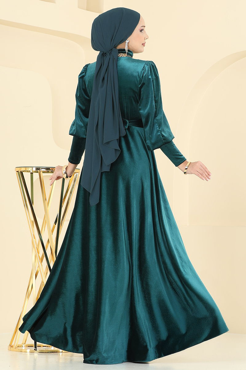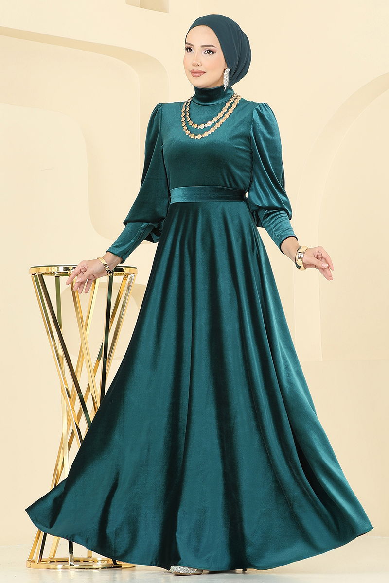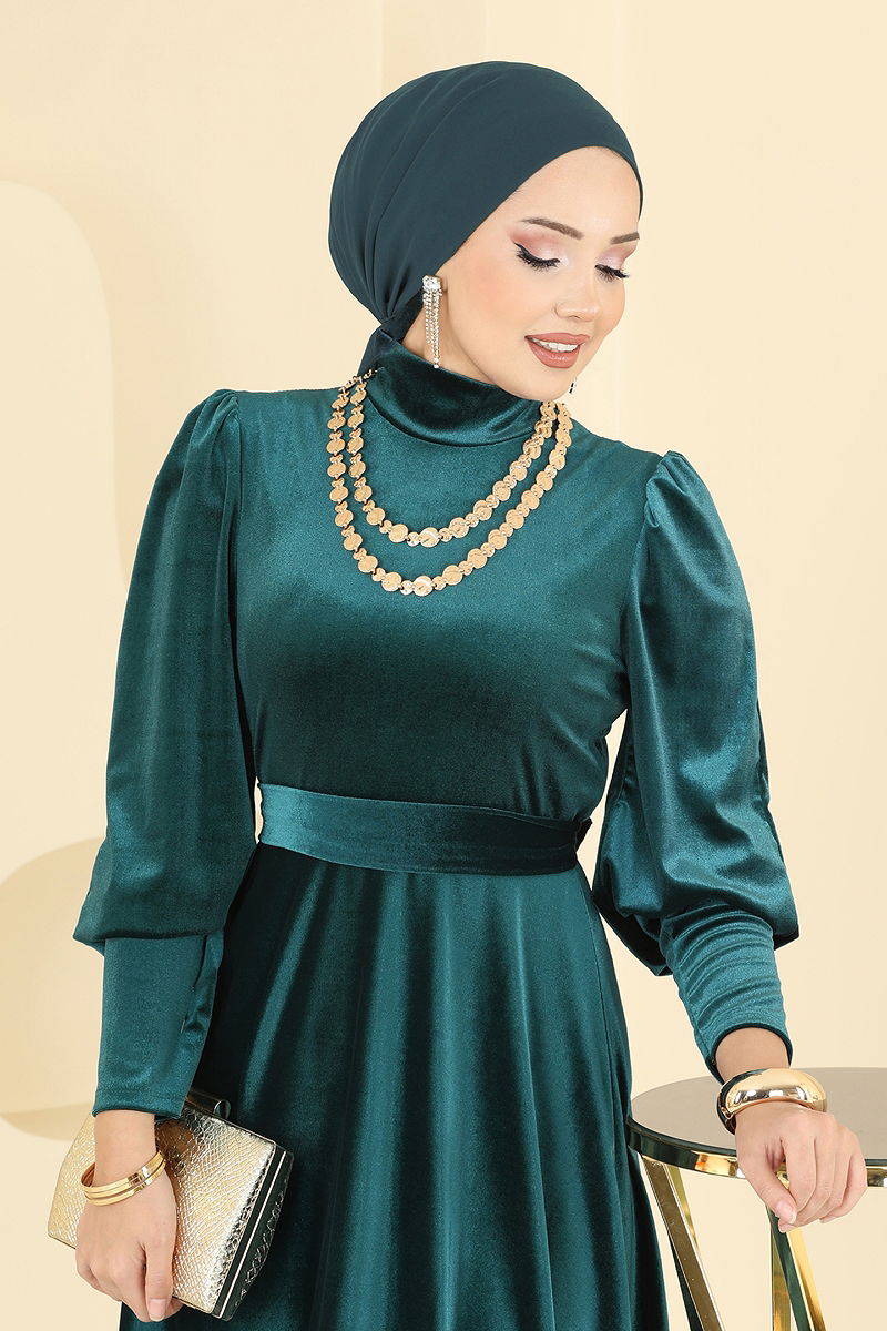 Manşeti Uzun Abiye Elbise Zümrüt