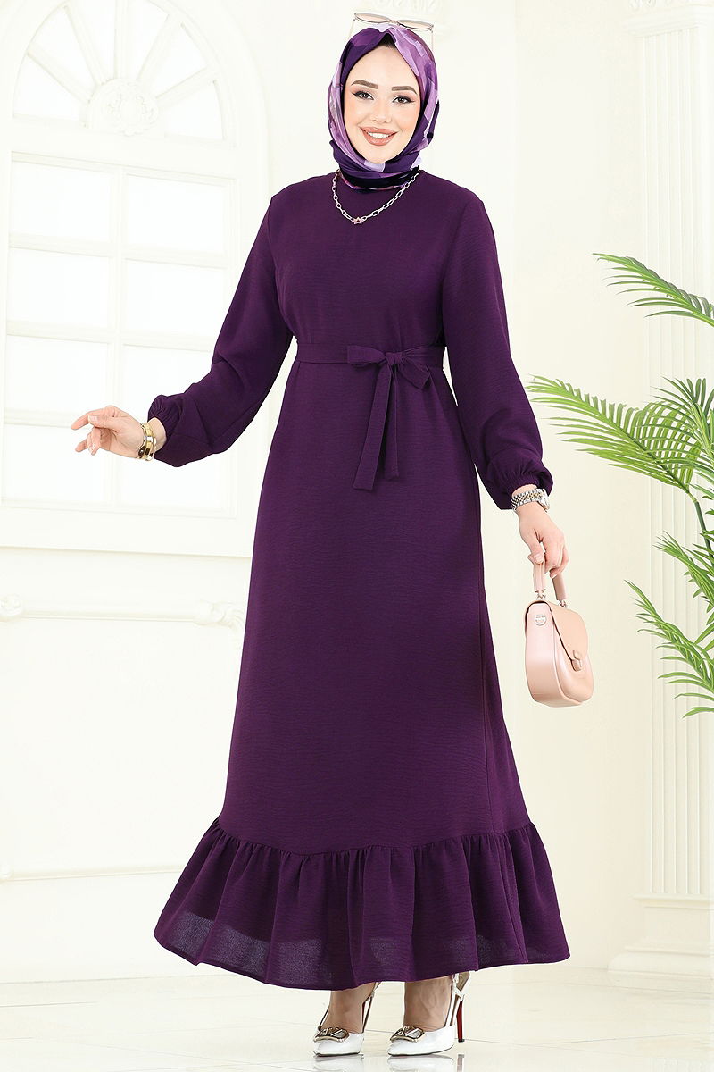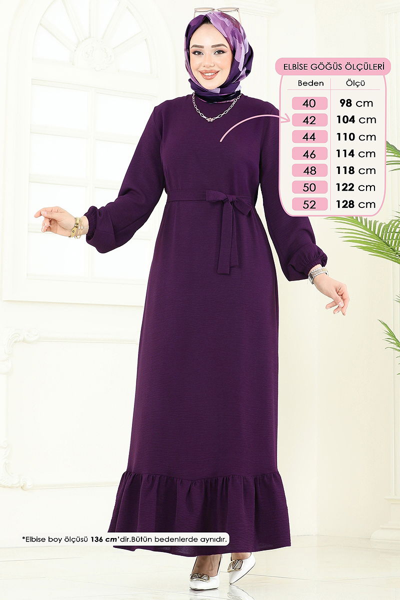 Manşetli Lastikli Aerobin Elbise Mor