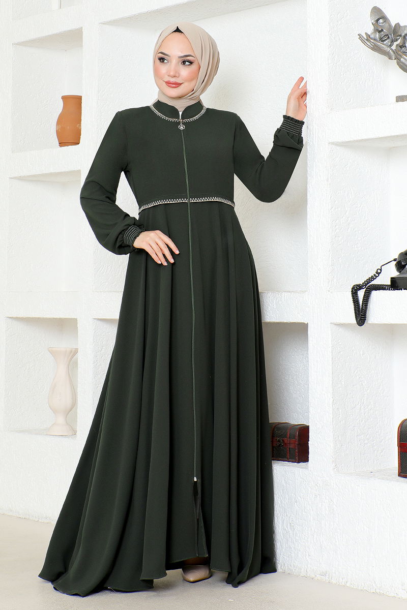 Fabric Feature : It is made of first class crepe fabric. It can be used in four seasons.Product Feature : It is a new season hijab fashion product. The product is bicycle collar. It is unlined. The product has a front zipper. There may be a tonal difference in the product due to concept photo shoots.