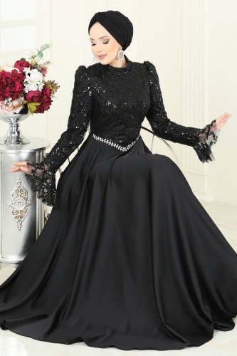 Manşeti Tüy Detaylı Şifon Abiye 2830ELC1143 Siyah