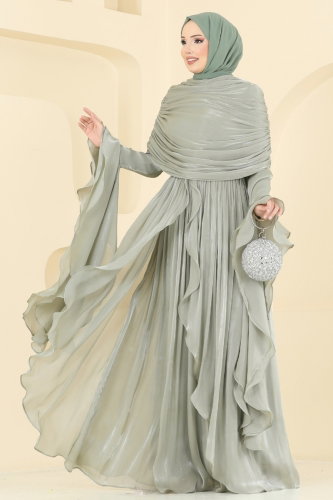 Manşeti Tüylü Kalem Abiye 8017YG95 Gri