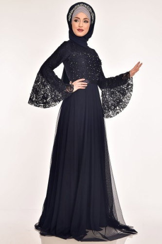 İnci İşlemeli Tesettür Abiye ASM2167-M Laci