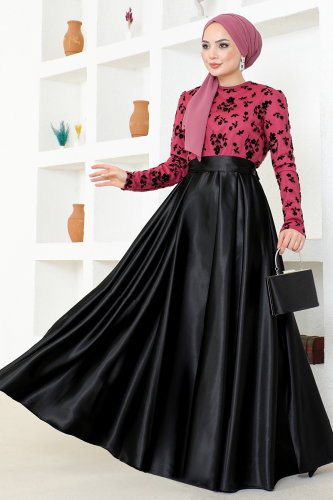 Flok Detaylı Tesettür Abiye ASM2709-M Fuşya
