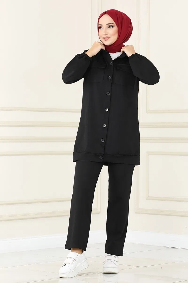 Önden Düğmeli Takım MSL1934-M Siyah