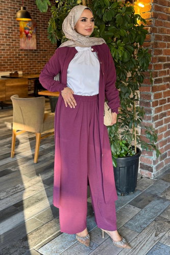 Gizli Düğmeli Aerobin Takım 4757ZNK903-M Mürdüm
