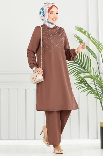 Taş Detaylı Şık Takım 430DVL897-M Kahve