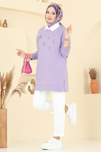 Taş Detaylı İki İp Tunik 102OZN1046 Lila