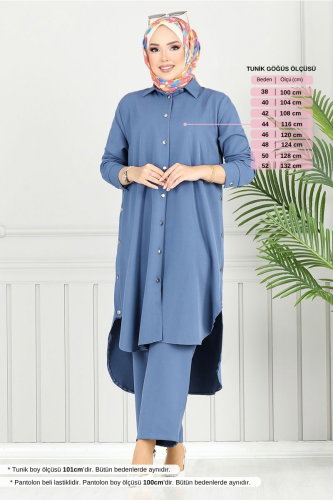 Yırtmaç Düğmeli İkili Takım 23019UKB929-M İndigo