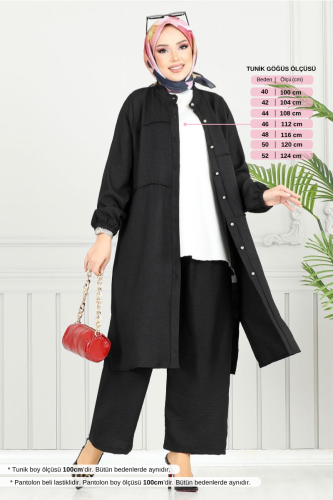 Önden Düğmeli Tesettür Takım 3114HBS932-M Siyah