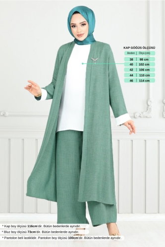 Yakası Taşlı Tesettür Takım 9144PL940-M Açık Mint