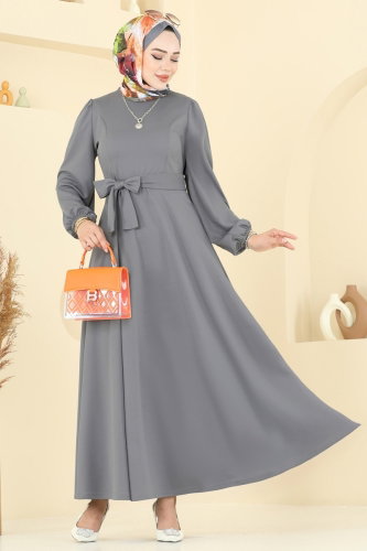 Beli Kuşaklı Elbise 25029UKB139 Gri