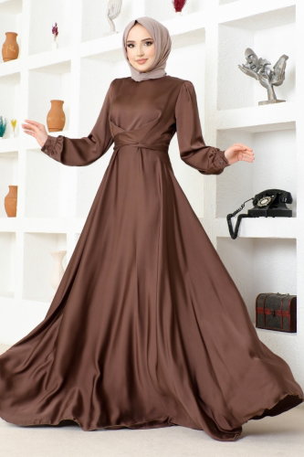 Göğsü Drapeli Tesettür Abiye 5690EDF311 Koyu Vizyon