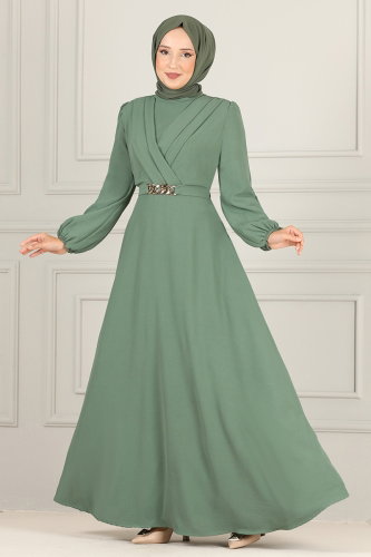 Kemerli Tesettür Elbise ASM2534-M Çağla