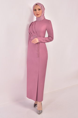 Drapeli Kalem Elbise ASM2558-M Gül Kurusu