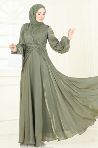 SUAL Önü Drapeli Şifon Abiye 5286D170 Haki