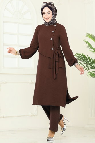 Önü Taşlı Bağcıklı Takım 2719SL432 Kahve
