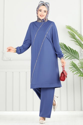 Manşeti Lastikli Tesettür Takım 428DVL897-M İndigo