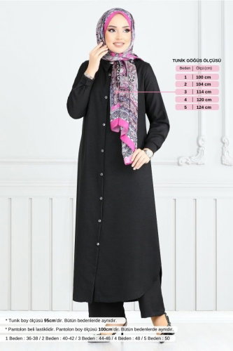Önü Düğmeli Tesettür Takım 808OZR1047-M Siyah