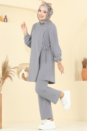 Aksesuar Detaylı İki İp Takım PL9166 Gri