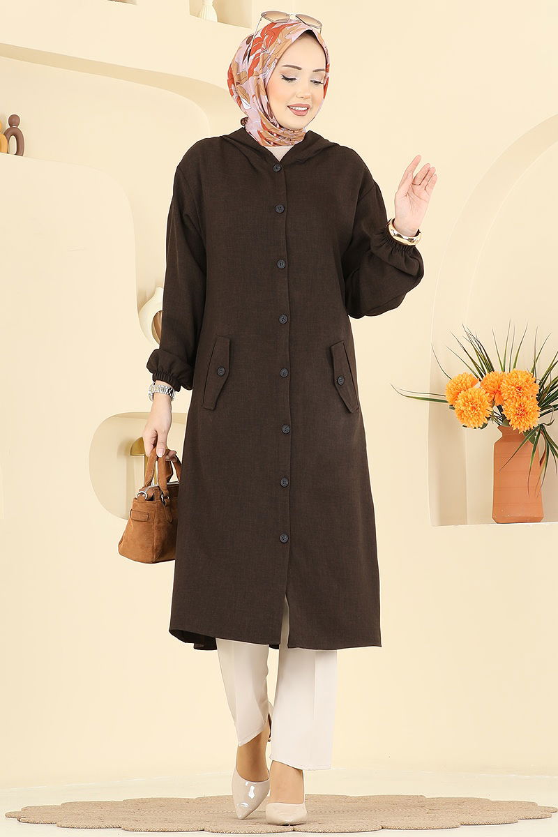 Modern Düğmeli Uzun Kap 3082KTR750 Acı Kahve