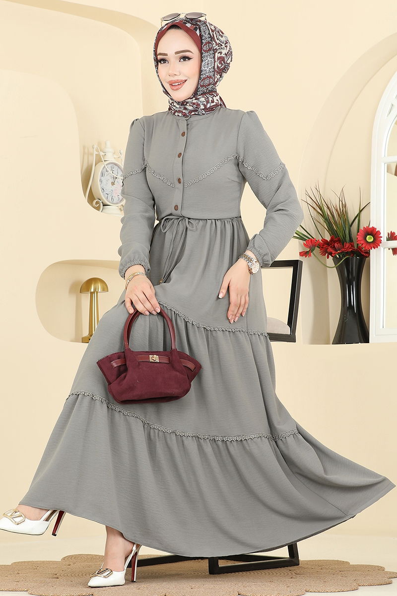 Motif Detaylı Aerobin Elbise 6601ORG1169 Gri