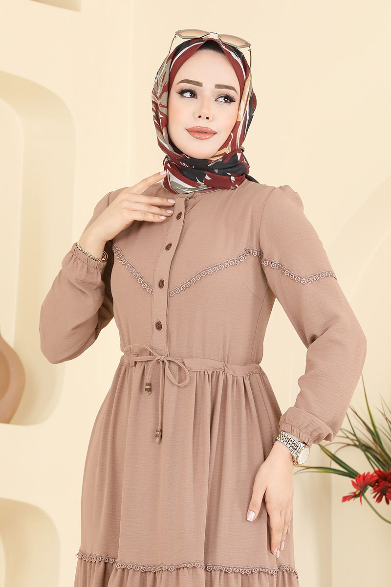 Eşsiz tasarımı ve konforu ile dört mevsim rahatlıkla giyebileceğiniz Motif Detaylı Aerobin Elbise, tesettür modasına yeni bir soluk getiriyor. Hassas yapısıyla 30 derecede yıkanabilen bu elbise, yarım hakim yaka ve önden yarım düğme detayları ile hem şık hem de pratik bir kullanım sunar. Beli bağcıklı ve manşetleri lastikli olan bu model, aerobin kumaşın hafifliği ve nefes alabilirliği ile gün boyu rahatlığınızı sağlar. Astarsız yapısıyla hafif ve rahat bir alternatif arayanlar için ideal. 38 beden üzerindeki model ile sunulan bu elbise, her bedene ve stile uygun bir seçenek olarak öne çıkıyor.