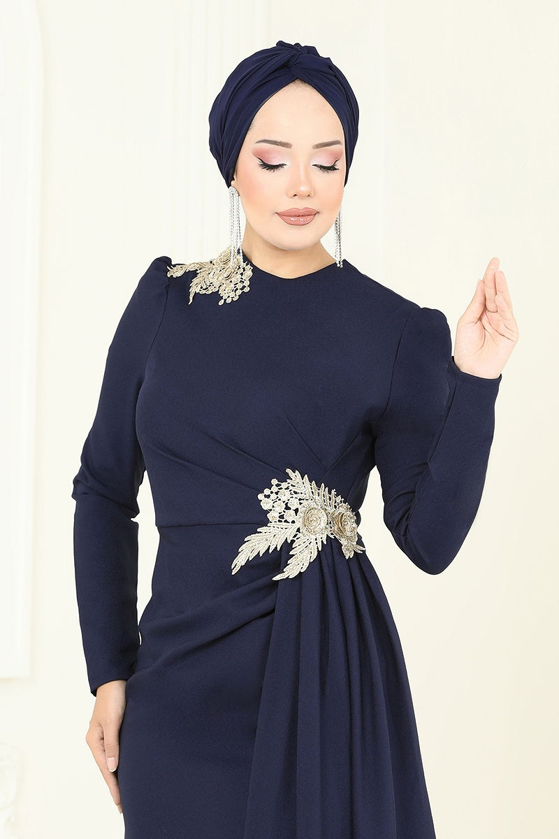 Şıklığını tamamlayacak Nakış Detay Abiye Elbise, dört mevsim boyunca rahatlıkla tercih edebileceğin bir model. Krep kumaşın zarafetini bisiklet yaka ve sırttan fermuar detayı ile birleştiren bu elbise, astarsız yapısıyla hafif ve konforlu bir kullanım sunar. Güpür detayları ile göz kamaştırıcı bir görünüme kavuşurken, 38 beden model üzerinden ölçülerinizi karşılaştırabilirsiniz. Not: Elbise yalnızca kuru temizleme ile temizlenmelidir.