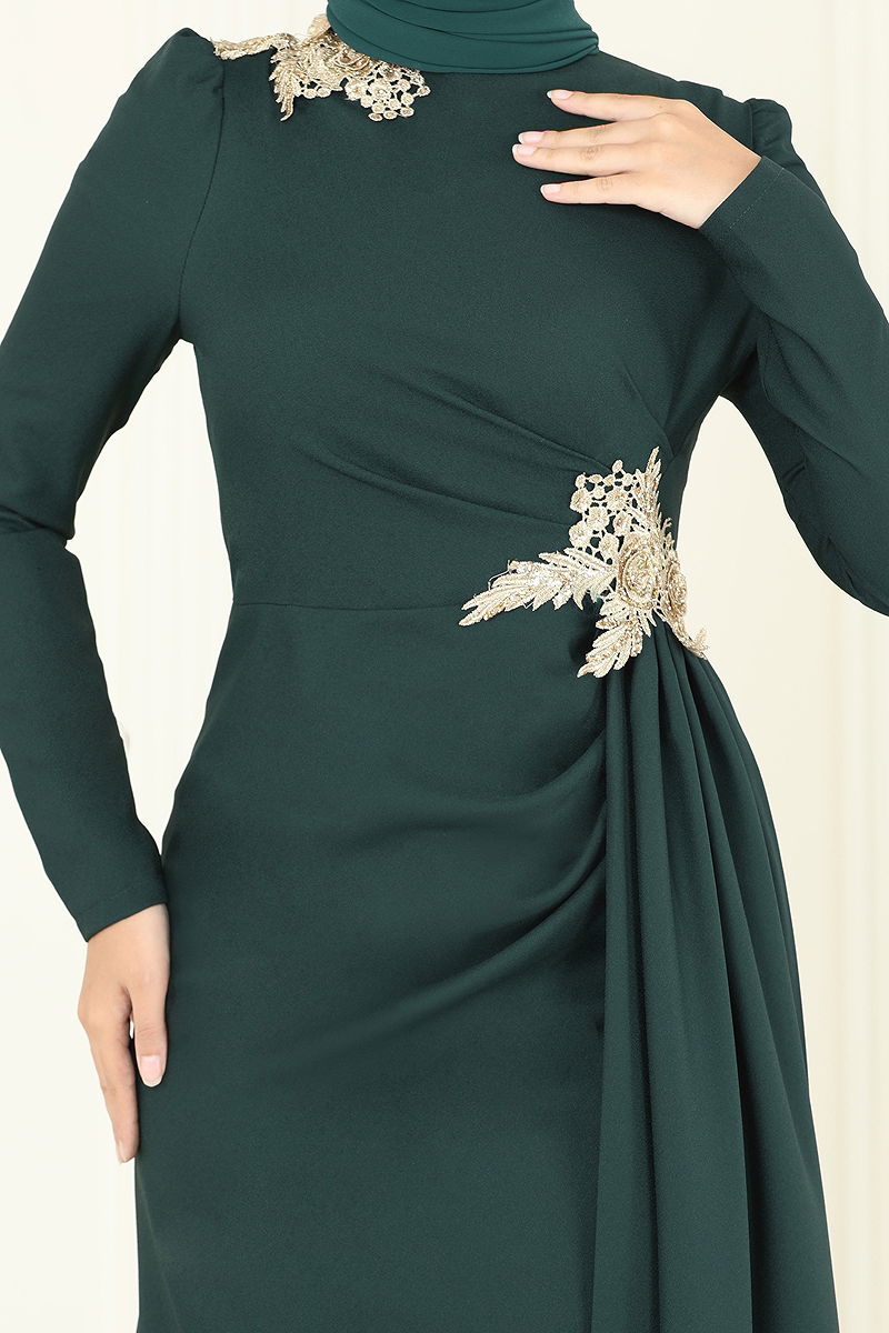 Şıklığını tamamlayacak Nakış Detay Abiye Elbise, dört mevsim boyunca rahatlıkla tercih edebileceğin bir model. Krep kumaşın zarafetini bisiklet yaka ve sırttan fermuar detayı ile birleştiren bu elbise, astarsız yapısıyla hafif ve konforlu bir kullanım sunar. Güpür detayları ile göz kamaştırıcı bir görünüme kavuşurken, 38 beden model üzerinden ölçülerinizi karşılaştırabilirsiniz. Not: Elbise yalnızca kuru temizleme ile temizlenmelidir.