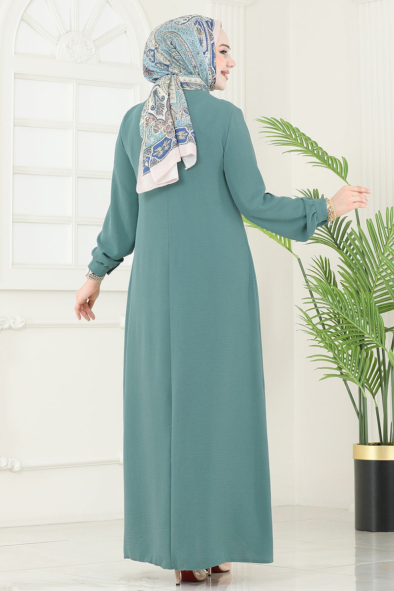 Nakış Detay Aerobin Elbise, tesettür modeli ile dört mevsim rahatlıkla kullanılabilir. 30 derecede hassas yıkama özelliği sayesinde kolayca temizlenebilir. Aerobin kumaşın hafifliği ve nefes alabilen yapısı, gün boyu konfor sunar. Bisiklet yaka ve ön düğme detayları ile şık ve pratik bir kullanım sağlar. Nakış detayları ve aktif manşet düğmeleriyle modern ve zarif bir görünüm kazandırır. Ürün astarsızdır ve modelin üzerindeki örnek 38 bedendir.