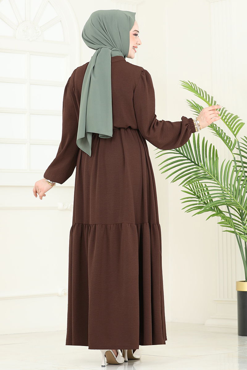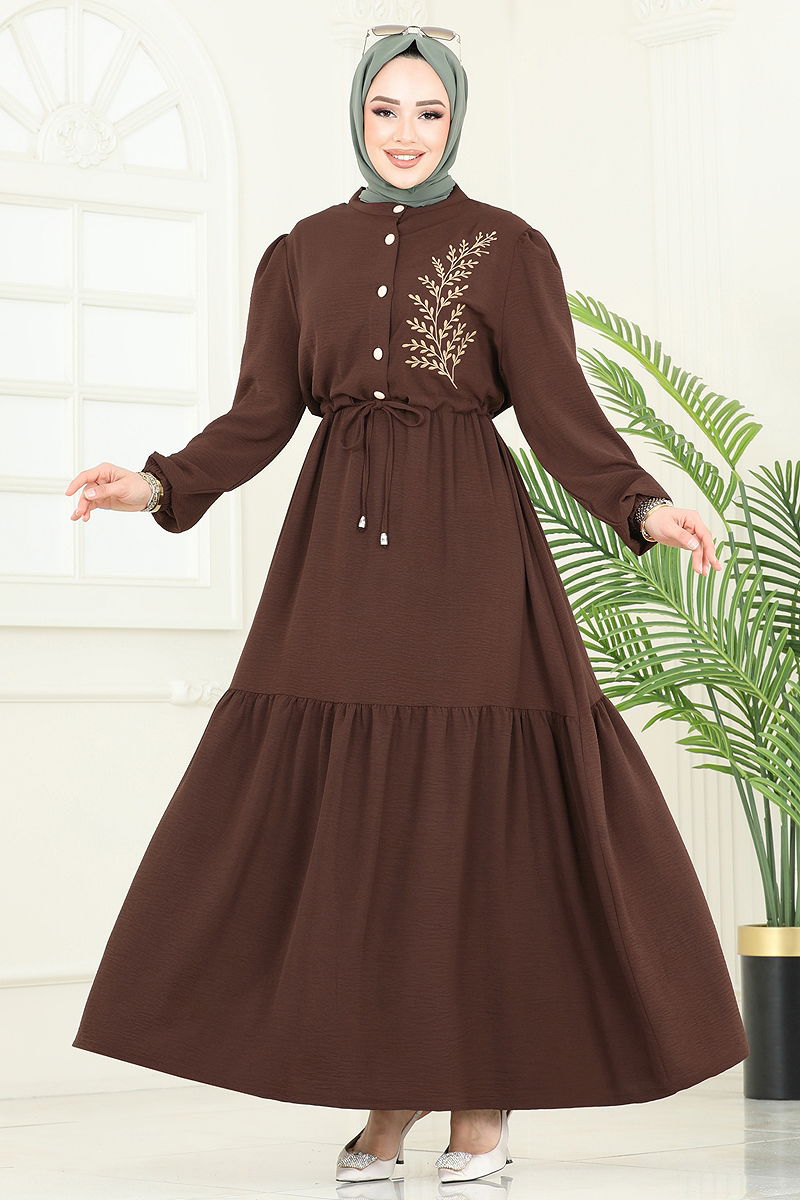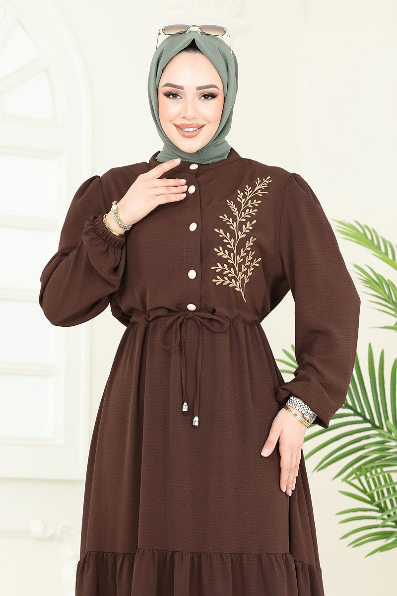 Nakış Detaylı Aerobin Elbise Kahve