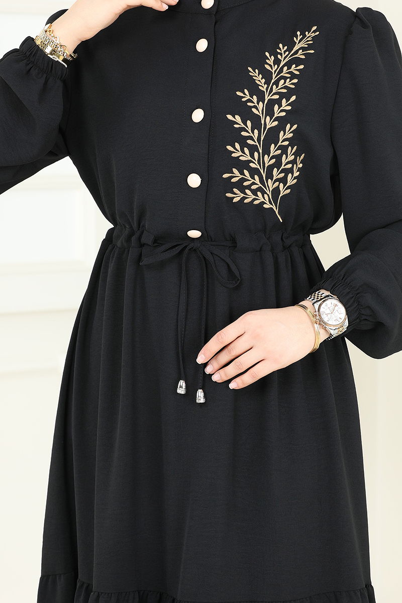 Nakış Detaylı Aerobin Elbise Siyah