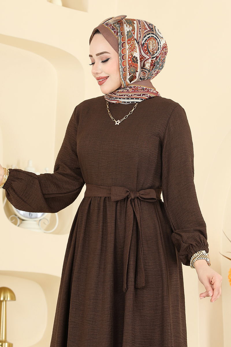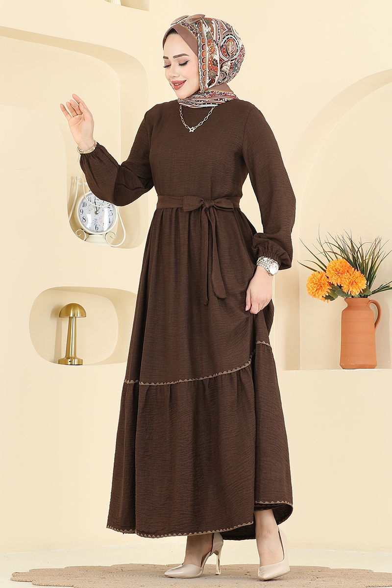 Nakış Detaylı Sofia Elbise Koyu Kahve