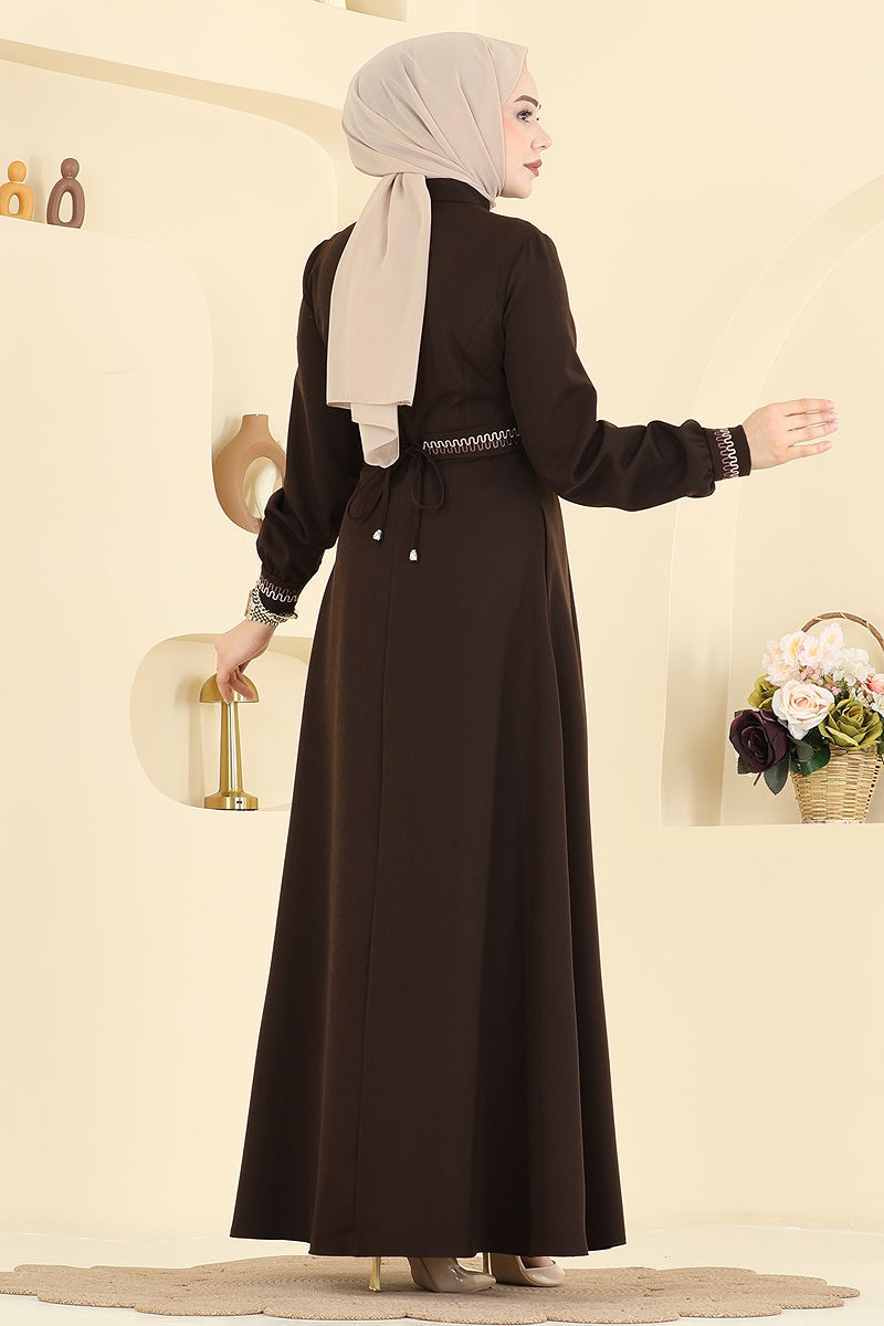 Nakış Detaylı Tesettür Ferace 2801SL432 Acı Kahve