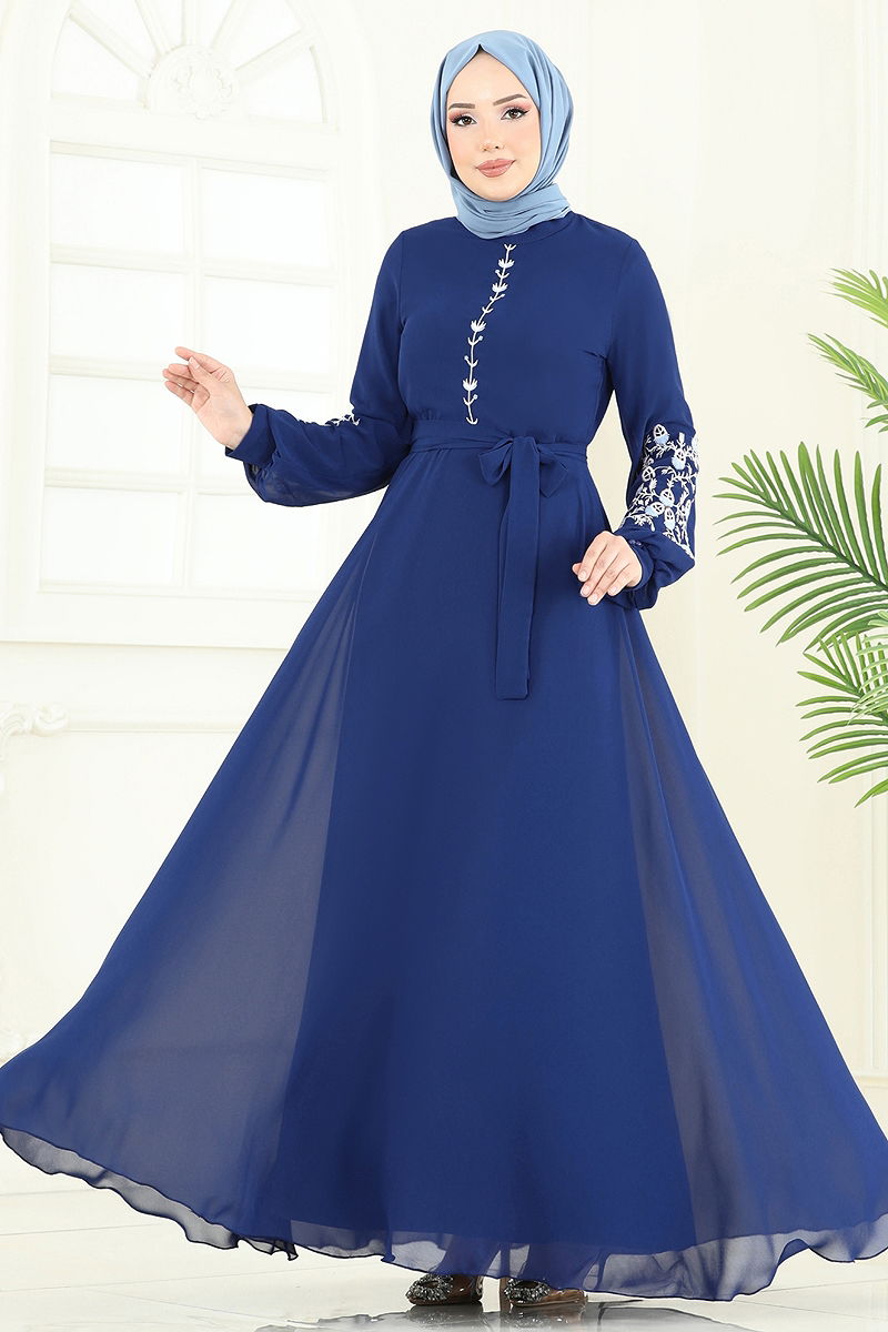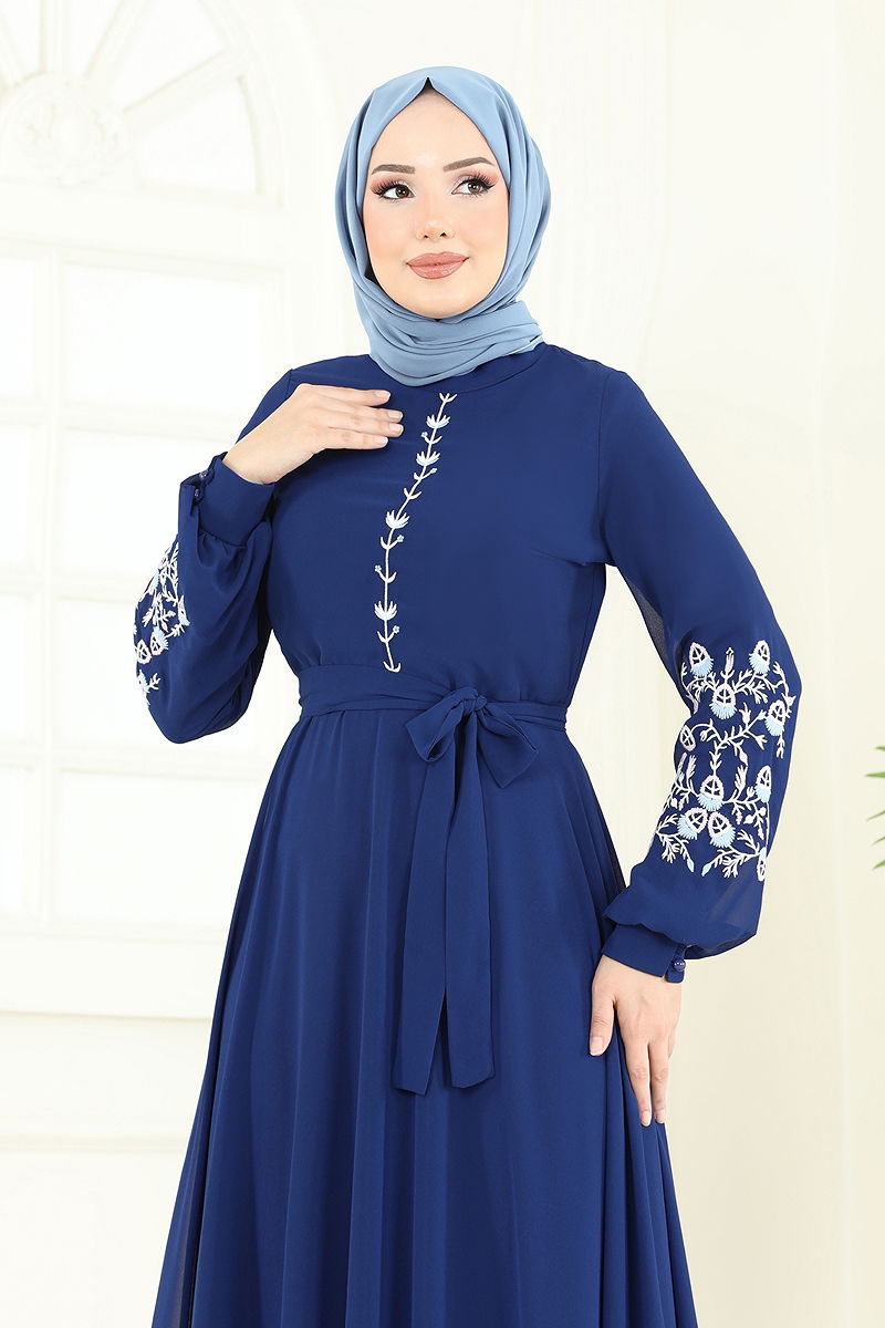 Şıklığı ve rahatlığı bir arada sunan Nakış İşlemeli Şifon Elbise, dört mevsim boyunca tercih edebileceğiniz ideal bir tesettür ürünüdür. Hassas ve şık detaylarıyla dikkat çeken bu elbise, 30 derecede hassas yıkama ile temizlenebilir. Yumuşak şifon kumaşı, hakim yaka tasarımı ile zarif bir görünüm sunarken, astarlı yapısıyla konforu artırmaktadır. Sırttan fermuarlı olan bu model, nakış detayları ile göz kamaştırır. Üründe bulunan kemer, şıklığına şıklık katarak, formunu korurken, manşet düğmeleri ise fonksiyonel bir detay olarak öne çıkar.