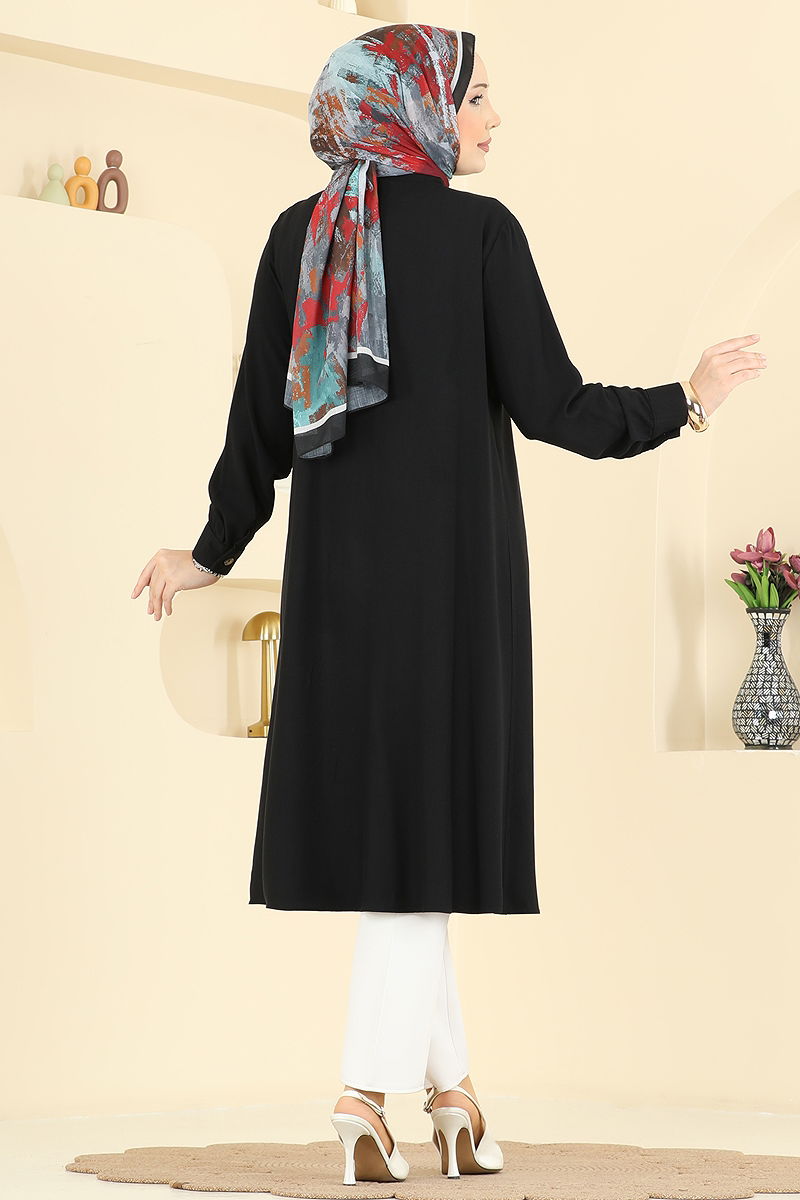 Bu şık Nervür Desenli Tunik, her mevsim rahatlıkla kullanabileceğiniz özel bir tasarımdır. Belmando kumaşın verdiği üstün konfor ile gün boyu rahatlığınızı koruyun. Gömlek yaka ve ön düğme detayları ile klasik ve modern çizgileri bir arada sunar. Aktif manşet düğmeleri ise kullanışlılığı artırır. Tesettür giyimde şıklığı ve rahatlığı bir arada arayanlar için ideal bir seçim.