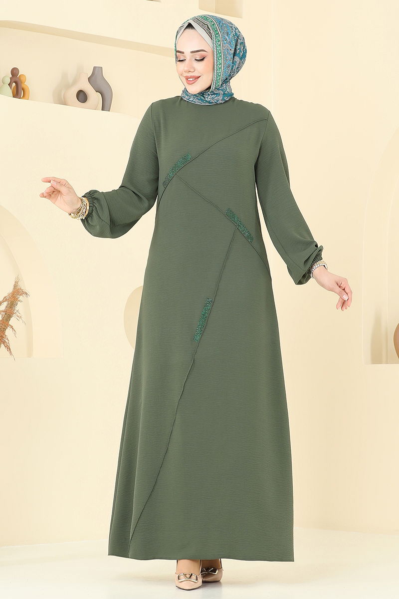 Nervür Detay Aerobin Elbise 2651SL432 Haki