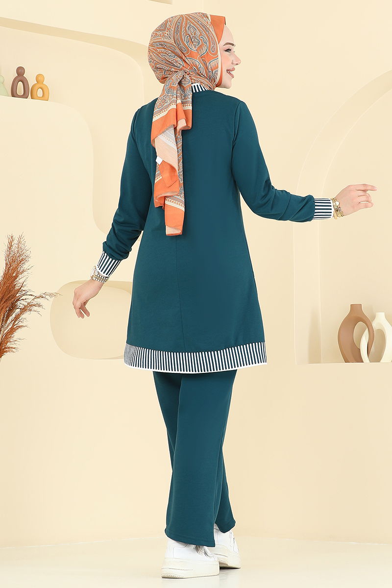 Nervür Detay Tesettür Takım Açık Petrol