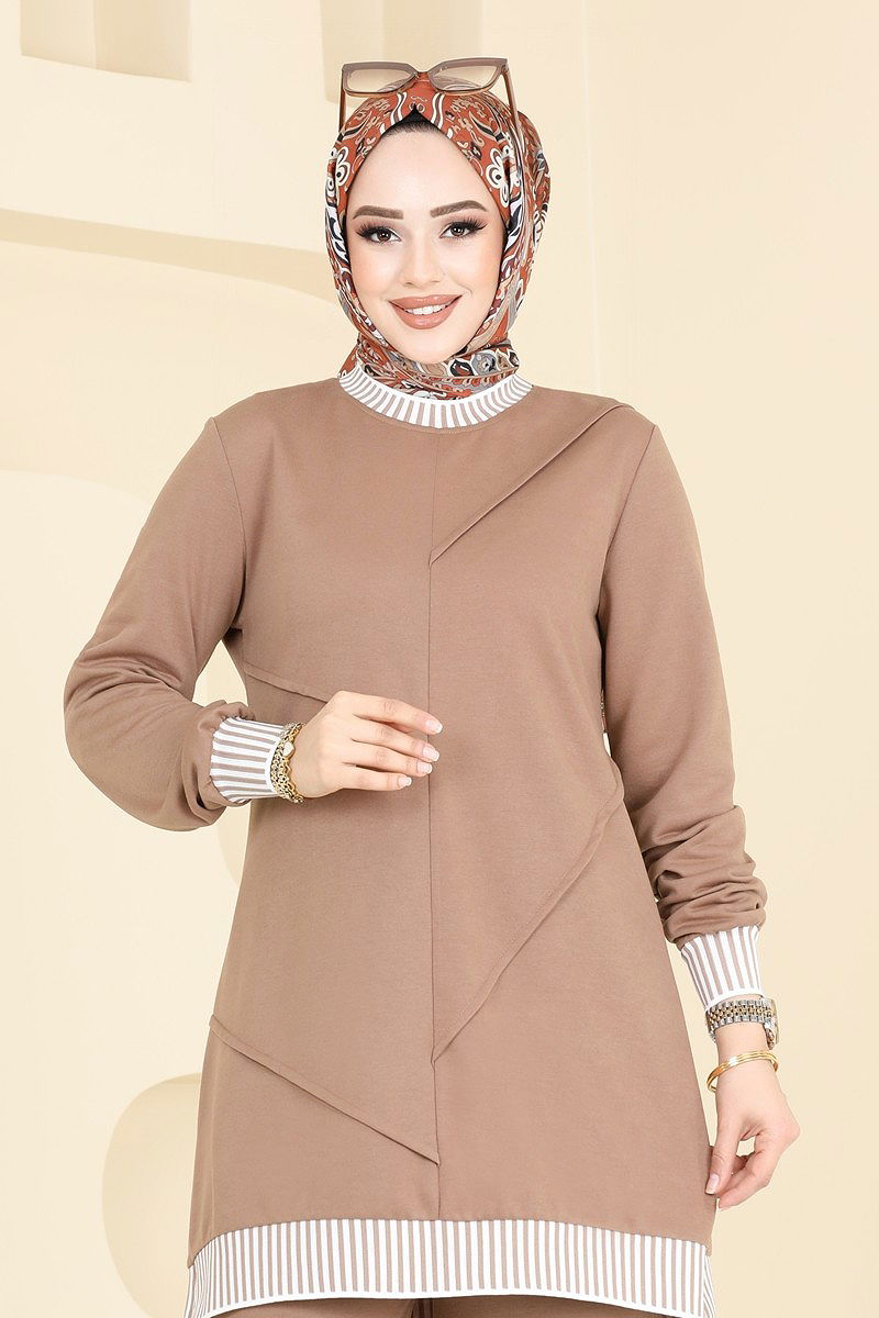 Nervür Detay Tesettür Takım Latte