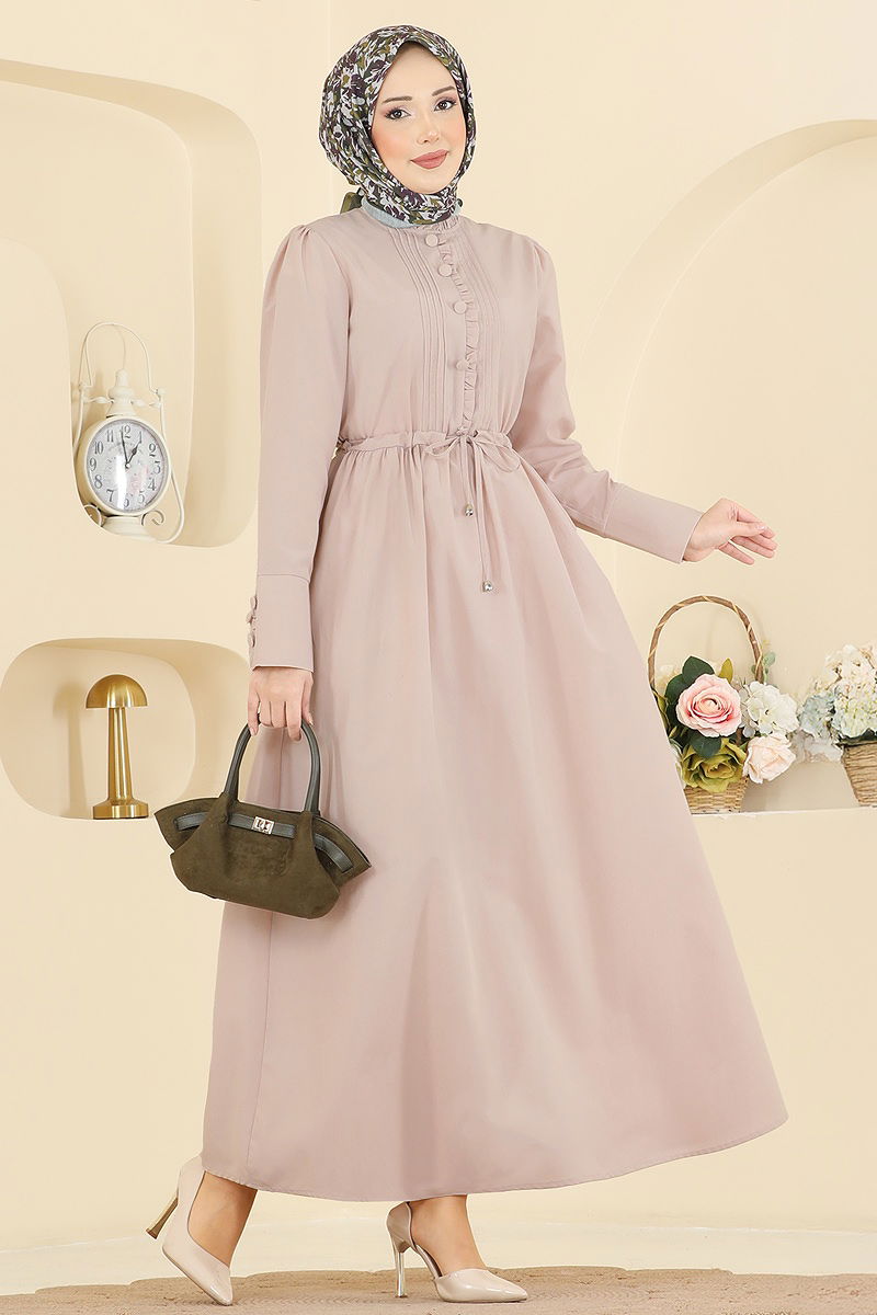 Nervür Detaylı Bağcıklı Elbise 3079KTR750 Taş