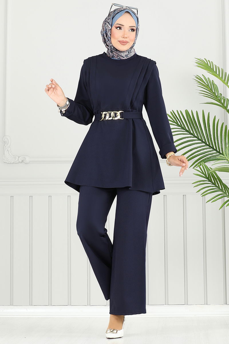 Ürün Özelliği : Yeni sezon tesettür moda ürünüdür. Ürün Bisiklet yakadır. Astarsızdır. Ürün Sırttan fermuarlıdır. Ürün beli dikişlidir. Kemer ürüne dahildir, isteğe bağlı kullanılmayabilir. Pantolon beli lastiklidir. Konsept fotoğraf çekimlerinden dolayı üründe ton farklılığı olabilir.