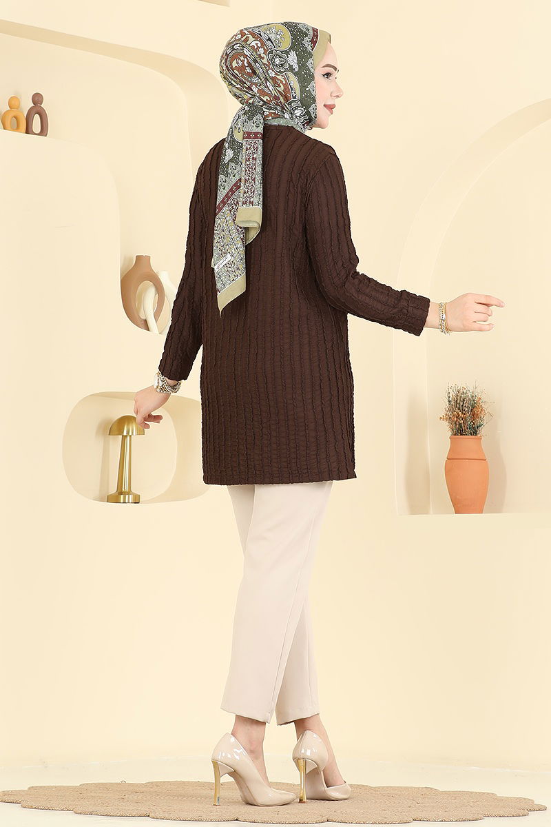Nervür Detaylı Örme Tunik 133OZN1046 Kahve