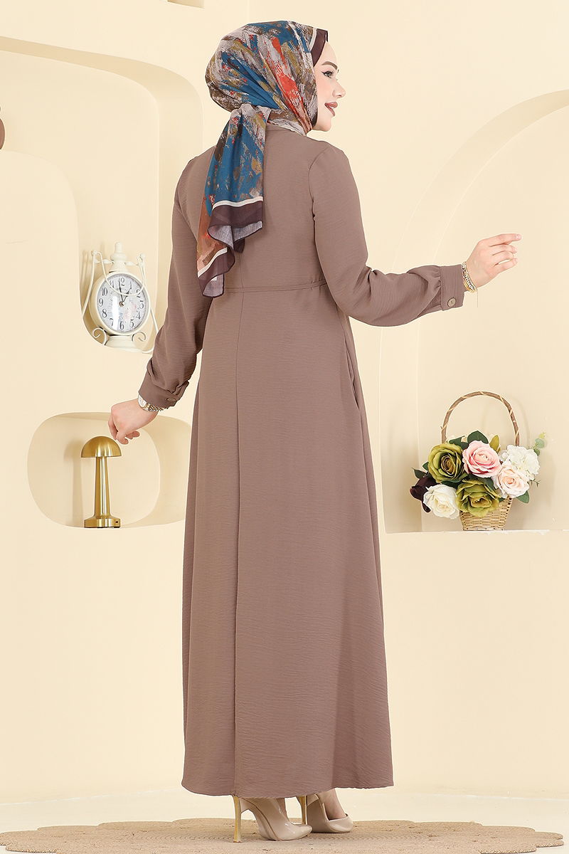 Nervür Dikişli Aerobin Elbise, tesettür modeli ile dört mevsim rahatlık sunar. Hassas yıkama modunda 30 derecede yıkanabilen bu elbise, hafif aerobin kumaşı sayesinde gün boyu konfor sağlar. Hakim yaka ve önünde düğmeler bulunur. Kemer, dalgalanmayı önlemek için uçları dikili olarak tasarlanmış ve isteğe bağlı şekilde kullanılabilir. Pratik cepleri ve aktif manşet düğmeleri ile hem şık hem de işlevsel bir tercihtir. Beden seçenekleri ile her vücut tipine uygun olan bu elbise, gardırobunuzun vazgeçilmez parçalarından biri olacak.