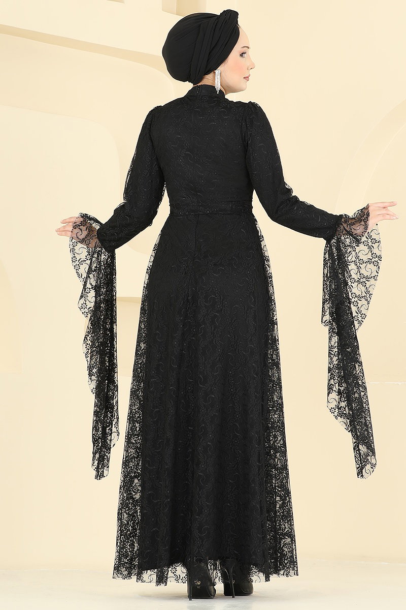 Nostaljik Esintili Dantel Elbise 6294BSK463 Siyah