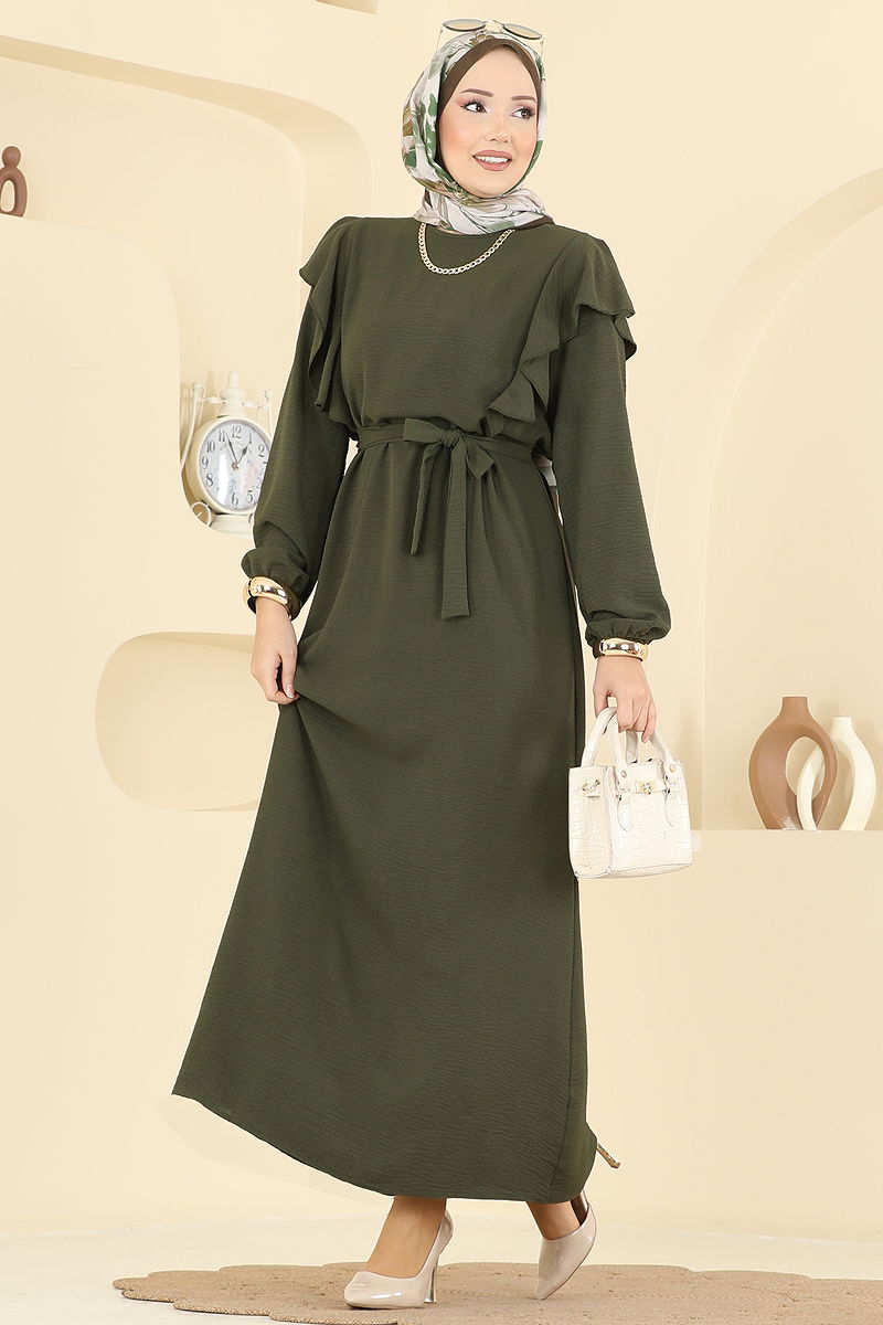 Omuz Fırfırlı Aerobin Elbise Haki