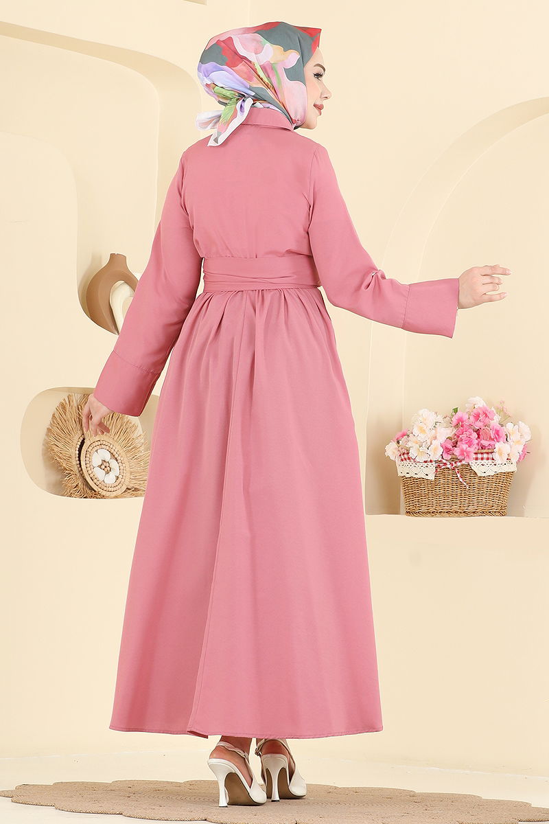 Önden Bağlamalı Terikoton Elbise 202ART1138 Gül Kurusu