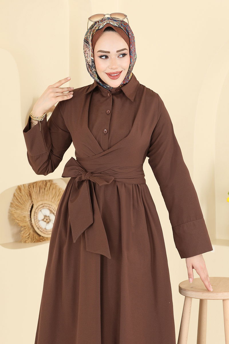 Önden Bağlamalı Terikoton Elbise 202ART1138 Kahve