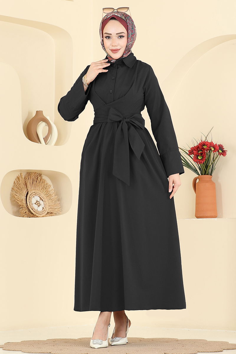 Önden Bağlamalı Terikoton Elbise Siyah