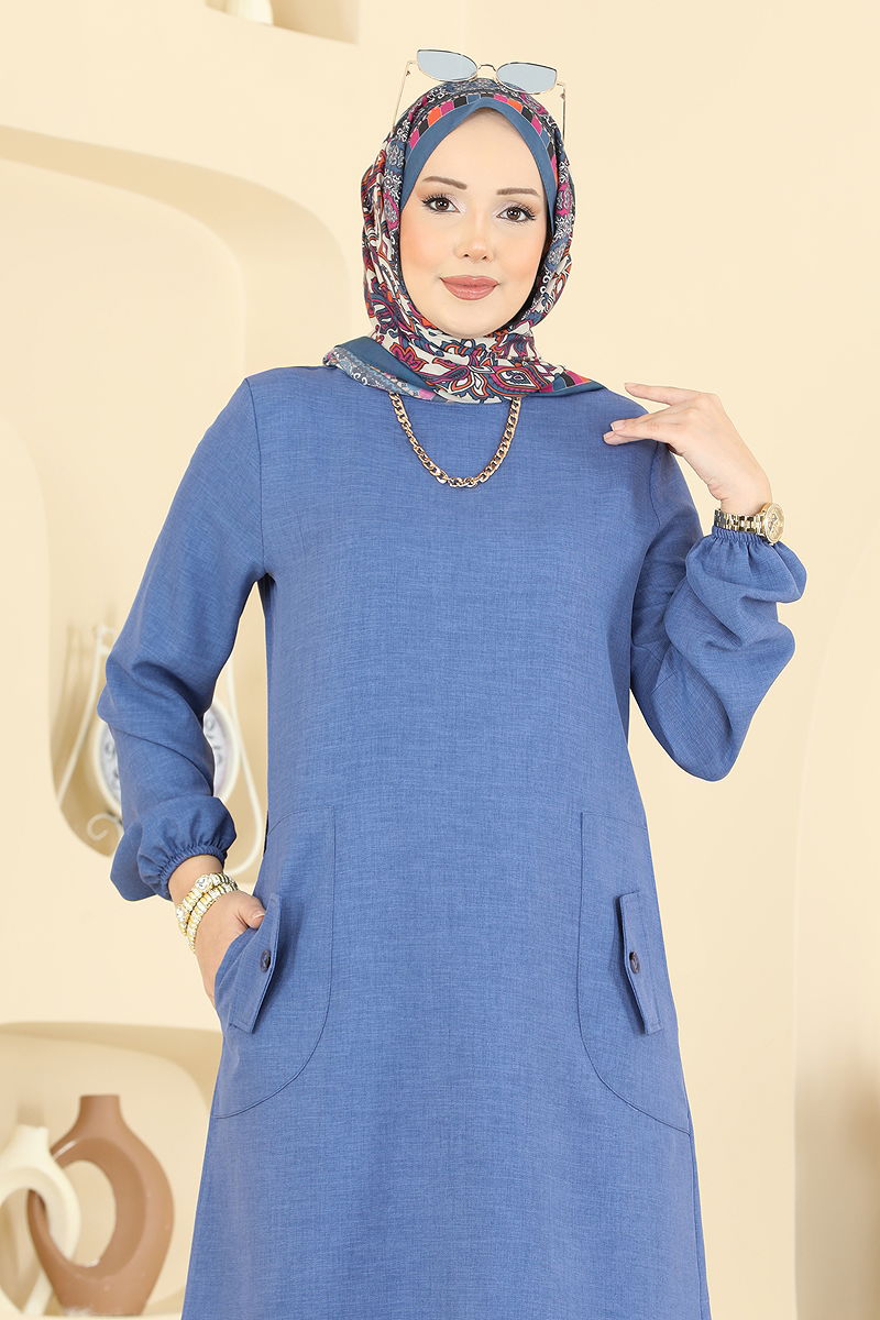 Önden Cepli Sofia Tunik 3081KTR750 İndigo