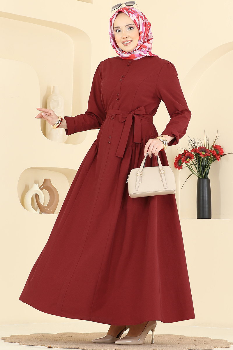 Önden Çift Düğmeli Elbise 3086KTR750 Bordo